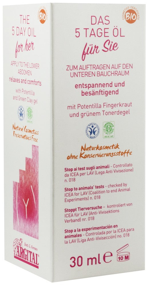 Uleiul de 5 zile relaxează și alină tensiunea ori disconfortul în perioada menstruala, cele 5 zile ale lunii în care o femeie este vulnerabilă atât fizic cât și psihic.