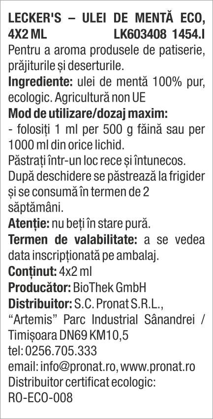 Ingrediente: ulei de mentă 100% pur, ecologic.
