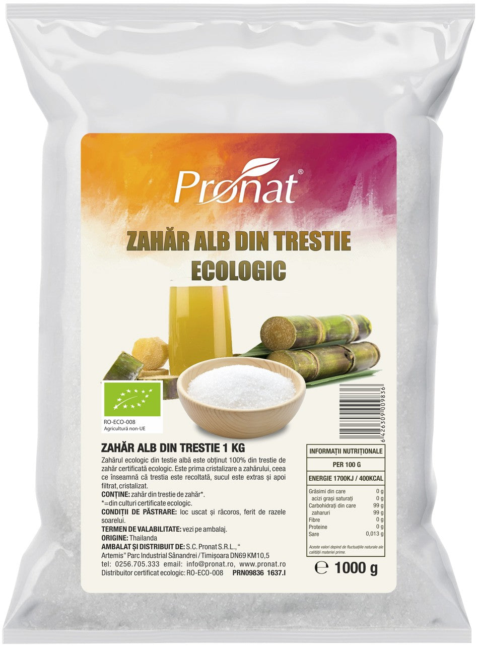 Zahărul ecologic din testie albă este obținut 100% din trestie de zahăr certificată ecologic. Este prima cristalizare a zahărului, ceea ce înseamnă că trestia este recoltată, sucul este extras și apoi filtrat, cristalizat.
